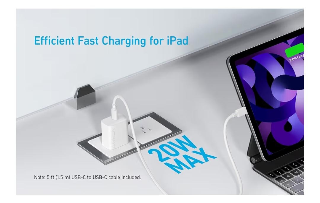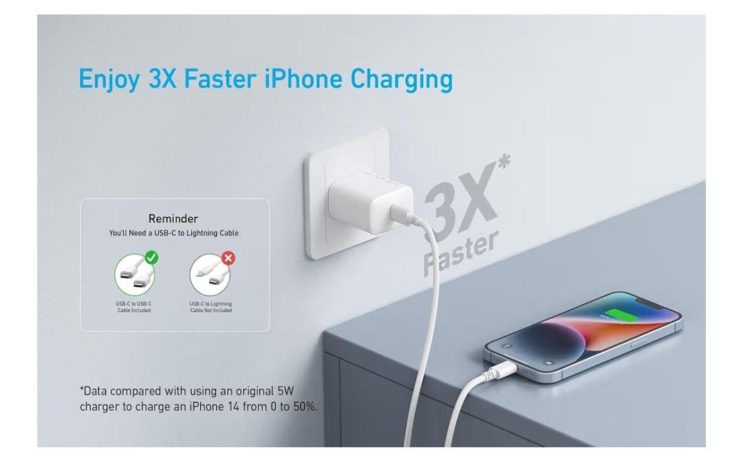 تصميم موفر للمساحة: بنسبة 50% أصغر من شاحن ايفون 12 القياسي بمنفذ USB نوع سي، يوفر انكر طاقة أكبر مع توفير مساحة في شنطتك أو أثناء توصيله بمنفذ حائط.