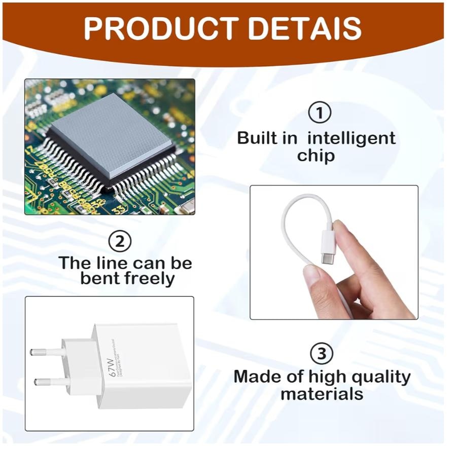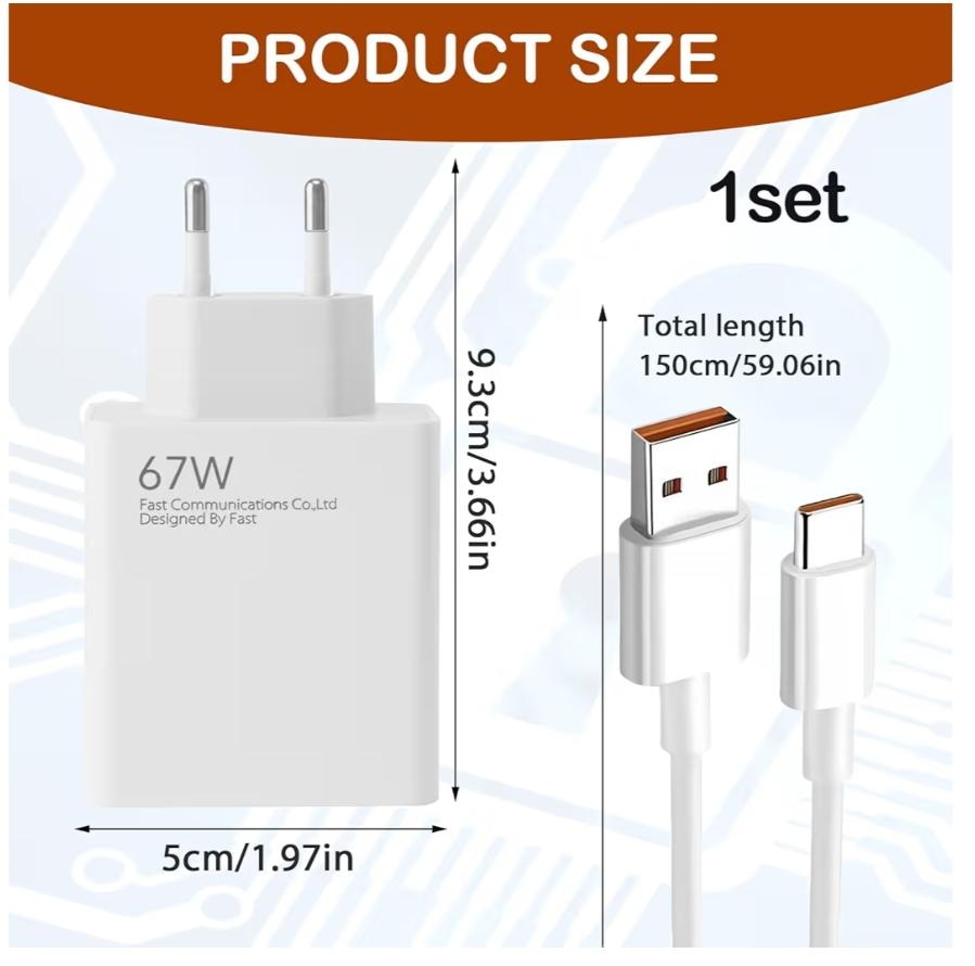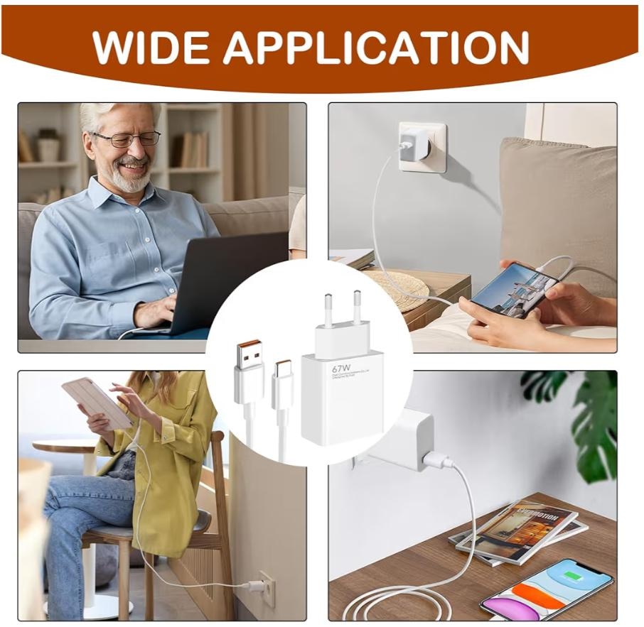 【توافق واسع النطاق】هذا الشاحن لموبايل شاومي بقدرة 67 واط متوافق مع موبايلات شاومي ريدمي نوت 13 برو/12 برو شبكة الجيل الخامس (5G)/11 برو شبكة الجيل الخامس (5G) وبوكو X6 برو/بوكو M6 برو/بوكو X6/بوكو X5 برو/بوكو F4/بوكو F5/بوكو F5 برو وشاومي ريدمي 13/13 لايت/12/12 لايت/11T وباد 6 برو و شحن 33 واط تربو/سريع لموبايلات شاومي ريدمي نوت 12/11/10 برو/10/10S و11 لايت شبكة الجيل الخامس (5G)/10T برو وبوكو X3 برو/بوكو F3/بوكو X3/بوكو X5.